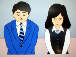 特に女性のほうが、その辺はこまやかなようだ。男性が口元の笑みを消しただけなのに対して、女性は口元だけでなく眉根を下げて、申し訳なさをあらわした。