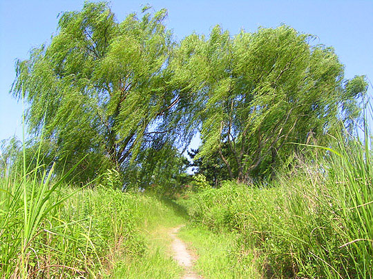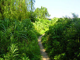 川沿いからひき返す。ちょっとズレた地点まで行ってみると、「国土交通省」が整理した、雑草の始末された、公園のようなスペースがひろがっていた。