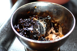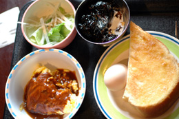 デミグラスソースがおいしい。ほんのり暖かいし、朝ごはんにはちょうどいいかもしれない。いつでもモーニングをやっている店なのだが。
