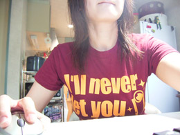べたべた感を押さえ気味にしたので、肌への密着度は低い。何もしないでいると落ちてしまうので、わりとぴったり目のTシャツを着て過ごす。