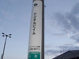 大島一周の目的は、弊社デジタルビイムの電柱広告のためでした。すみません。 元町の東海汽船発着場の目の前、牛乳せんべいのお店の横に出ております。大島にお越しの際には、是非ご覧ください。QRコードもあります。