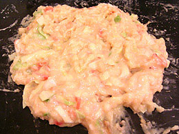 「あのねえ、もんじゃより、ちょっと濃いのよ」