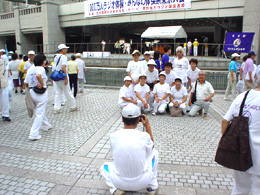 フラッシュ・モブといえば、インターネット上で呼びかけられた人々が公共の場に終結し、あらかじめ申し合わせた行動を取る即興の集まりのことだが、この集合ぶり、モブみたいだ。モブのように周りに対して何かやってやろう確信犯的な所が一切無い。素のモブか。