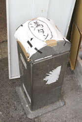 | これはゴミ箱ではありません。カン・ビン専用です。そして、フタが作ってありました。 |