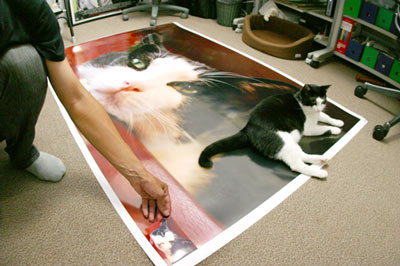 完成したプリントは、巻いて持って帰ることに。こうして見るとやはり巨大です。「これうちの猫です、見て見て〜」と、いざという時、簡単に人には見せられないサイズ。