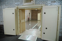 この金庫は三重構造になっていて、さきほどの門を越えて、そしてさらに2番目の門(イギリス製)も越えたところに現金が眠る部屋があります。 ドラクエの洞窟やお城の中みたいに、いきなり現金があるのではなく、本当の宝は奥のほうにあるのです。