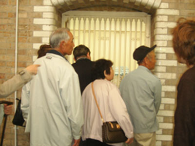 ついに現金倉庫に到着。いよいよ見えるぞ! と思いきやいい大人が年甲斐も泣く我先にと現金を拝もうとしていてみれない。なんだ、やっぱりみんなここが見たかったんですね。それにしても異様な光景だなー。そんなにしてまで見たいかね。おとなげないなー。