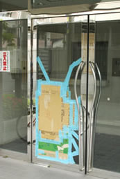 | 日を改めて見たときには、割れた部分がガムテープで貼り尽くされていた。美しさと機能がアップした。 |