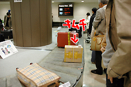で、キムチは機内に持ち込まず預けた