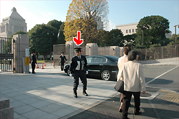 「警備の関係上すみません。取材ですか?観光ですか?」 「いや、あの、こ、こ、国会の写真を撮りたくて」 「観光で?」 「ええ、まあ。まずいですか?国会を撮ったら?」 「いや、どうぞ。一応目的を聞くきまりになっているので」