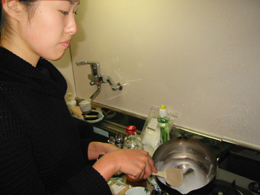 こうやって写真でみると、なんだか黙々と忙しく作業しているようですが、女の子が4人も集まれば当然おしゃべりに花が咲きます。 「川原君って怒ったりするんだ。それって結構意外ー。」 「山田君とはあんまり一緒に作業したくないなー。」 いつの時代も、ガールズが集まればボーイズのうわさ話でもちきりなものであります(男子の名誉を守るため仮名にしてあります)。