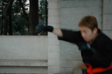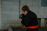 通常は白い空手衣を着用する道場がほとんどらしいが、黒い方が強そうに見えるかなあ、と思い黒を選んだ。帯も黒で統一しても良かったのだが、アクセントをつける為に赤にした。