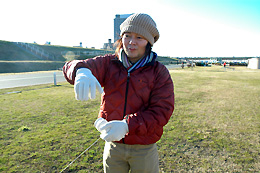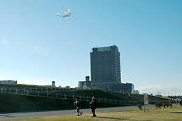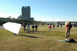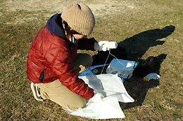 東京都指定のゴミ袋に凧糸をつけて飛ばしてみた。鯉のぼりのようにはなるが高くは上がらない。