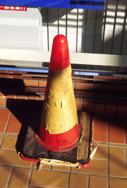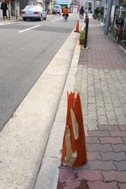 駐車禁止のためのコーンは、車と一対一のまさに命がけの最前線なのです。