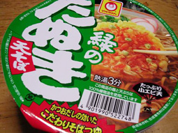 それでも、テレビCMなどで「緑のたぬき」と「どん兵衛」がカップ蕎麦業界の両巨頭ということくらいは知っている。 ちなみにここのスーパーでは、どちらも105円。今度は缶コーヒーより安い。いまの日本で飢え死にするのは難しそうだ。
