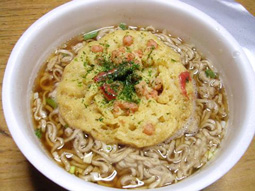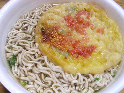 でも、かき揚げの違いはさすがに分かる。 なんせ、最初からお湯を注ぐタイプと、食べる直前に乗せるタイプだ。性格がまるで違う。これはパリパリ海苔のおにぎりと、しっとり海苔のおにぎり以上の差ではなかろうか。