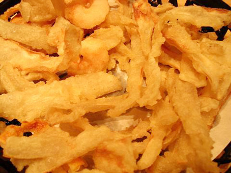 かき揚げといいつつ、よく見ると具がバラバラだ。 いろんな食べ方が出来るようにという店側の配慮だとしたら、これはすばらしい。ツボ突かれまくり。 それに衣で繋がっていない分、無駄に油っぽくないし。