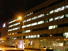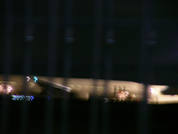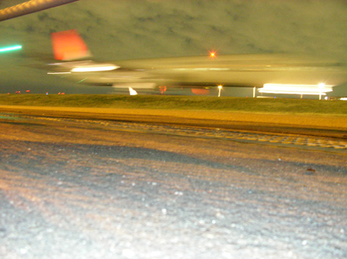 この駅を降りて驚いた。駅を抜けて地上に出るとすぐに、フェンスのすぐ向こうをジェット機が走っているのだ! 取材のスケジュール上夜間の撮影になってしまい、いまいち良い写真が撮れなかったのだが、雰囲気だけでも伝わることを祈ってその写 真をここに貼ることにしよう。