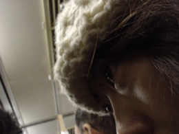 引き続き混み合う電車で移動する。電車内では手袋は普通取るだろうと思うのだが、ずらーっと下がる吊革につかまる手を眺めると、ときどき手袋のままの手も。おおー、手袋みっけ。もう電車に乗ってもホームにいてもすぐに人の手に目がいってしまう。