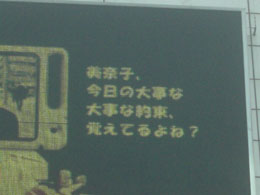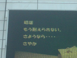と、いうわけで心温まる個人発信のメッセージでした。 しかし中には「そんな事街頭ビジョンで言わなくても」とおもうものもありました……。