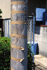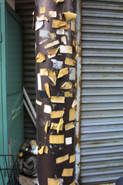 テイクフリーのチラシを電柱に貼り付けた跡なんですけど。大阪ならではでしょうか。