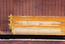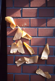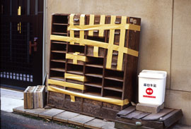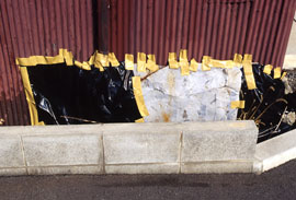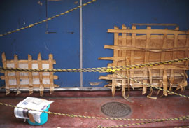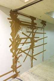 工事中の壁をつなぎ合わせてあるようです。すごいステッチは、刺繍の裏側みたい。