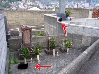映画「長崎ぶらぶら節」に登場する芸妓・愛八の墓付近も、以前訪れた時ネコがたくさんいた記憶があった。