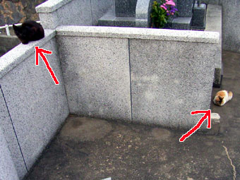 静かな墓地は、ネコにとって暮らしやすい空間なのかもしれない。死角が多いため全部で何匹いるのかわからなかったが、少なくとも12匹はいたようだ。 けっこう人を警戒しており、さわらせてはくれなかった。