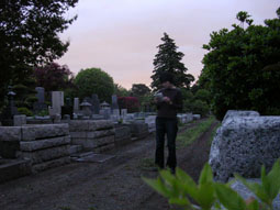 さて、次は誰の墓を見ようか…と歩くうちに、辺りが徐々に暮れ始めた。基本的に、舗装されてない道には外灯がない。