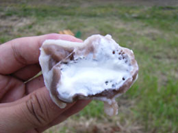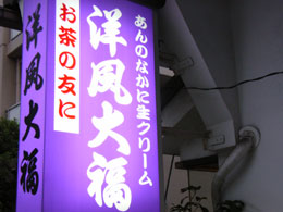 日暮れが近づいてきたころに、洋風大福という変わったお店を見つけました。といっても大福の中に生クリームが入ってるというだけですが。うまい。