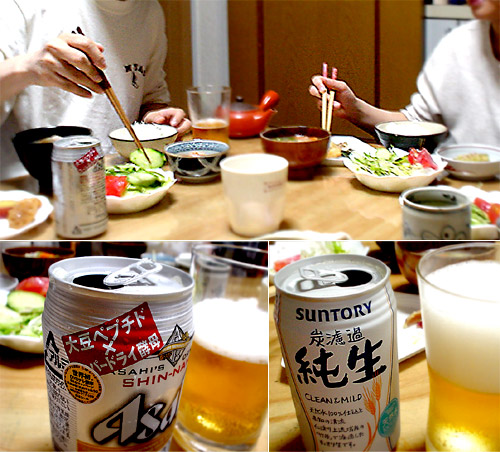 兄と妹の夕餉。左が「第3のビール」右が「第2のビール」