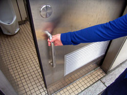 実に見通しのいい女子便所。 入り口のドアも目隠しもないので、大通りから中が丸見えである。