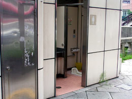 竹中さん的に許せない例をもうひとつ見に行った。 こんな交通量の多い道に面した位置にあるトイレである。