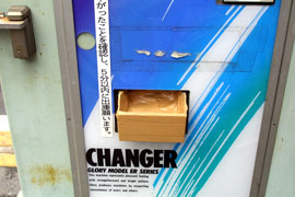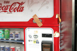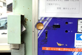 「故障中につき、使用できません」そんな貼り紙を貼らずとも、ピッと千切ったガムテープをコイン投入口に貼るだけで、目的が達成される。
