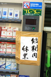 「短期間休業」という貼り紙。