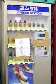 販売中止、故障」の貼り紙が。故障していたのです。やっぱり、故障していたのです。