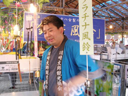 「あ、地震」と思う間もなく、テントの中の風鈴が「グワッシャグワッシャ」と音を立てて跳ねるように揺れ、女の人の「キャー」という悲鳴が聞こえた。テントの内側にいたお客さんが、慌てて外に出る。