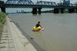 スタッフ「でもどうでしょう。川の真ん中あたりは確かに流れが急ですけど、端の方は比較的穏やかに見えます」