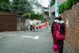 住宅街を歩いてみよう。寄っておいで、子供たち!ピエロだよ。