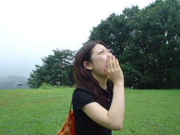 登山の中止と母の助け舟 登山の一心で帰ってきた私を、埼玉の大地は盛大な雨天で向かえた。道、ぬかるみまくり。このコンディションでは登山は難しい。「やっほー」への希望の糸はぷっつりと切れた。 なんだなんだ、今回のこの企画倒れっぷりは。 もう、こうなったら家族と餅でもついて、その様子を特集記事にしてくれようか。完全なるヤケ状態で、母に泣きついた。どこか、どこか大声で叫べる場所はこの辺りにございませぬかー。 「○○団地の奥の高台の上は静かで開けてていいんじゃない? 雨振ってるから人もいないだろうし」 娘の唐突な問いに、母は簡単そうに答えたのだった。その高台の他に、さくさくと2、3の候補地を挙げてくれた。しかも、やや自宅からは距離のあるその候補地に車で連れて行ってくれるという。 山ほどに高さのある高台へ 私の実家のある団地は、いわゆる新興住宅街で切り崩した山間にドワーッと2,000軒以上の住宅が並んでいる。 密集した住宅が山に包囲されているという状態だ。つまり、ひしめく住宅の端っこからはどこでも山に登れる。 母が案内してくれたのはそんな“端っこ”で近頃遊び場として整備された場所らしい。着いてみると、確かにきれいな公園のような入り口がある。 入り口の隣は完全に住宅街だ。まさかここで大声を出す訳には……。と思ったが、入ってみると道は容赦なく上へ続いていた。登っても登っても上への階段が。 園内へ入る頃は、住宅街を走るさおだけ屋のアナウンスが鳴っていたが、登り続けるうちにそれも聞こえなくなった。 シューン、シューン、シューン セミの鳴き声だけが聞こえる。あたりには私と母しかいない。……静かだ。 |