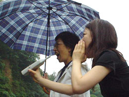 ・あまり高い声を出すと首の裏の方に響く。やや低温を意識するとよい。 最後に、そんなコツをふまえての渾身の叫びをお聞きいただければ幸いです。しかしスッキリしました。雨の中叫んで風邪をひいてしまいましたが、私は満足です! >>叫びその1(娘一人バージョン) >>叫びその2(母娘二人バージョン) ご清聴、ありがとうございました。 |