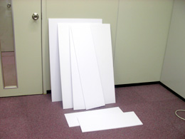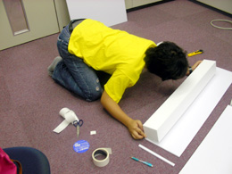 スチレンボードだけだと箱が弱いので、カドを発泡スチロールの角柱で補強することにした。これで接着面が増えて丈夫になる。