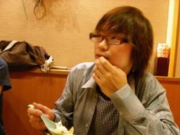 11:30〜12:30の入出力 そしてフィニッシュまでの1時間。12時をまわって終電時刻のある梅田さんが、食べるつもりで追加オーダーしたチャーハンやチーズオムレツなどが出てこないまま退散してしまった。 頼んだ当人が帰った直後にサーブされたチャーハンやオムレツなどのヘビーメニュー。これが残った人々の体重増加のだめ押しに一役買うかたちに。 |
