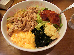 「ビッグ丼」というのが名物で、洗面器のような巨大な器に肉とか野菜とかマーボー豆腐などがてんこ盛りになっている。