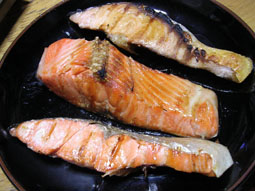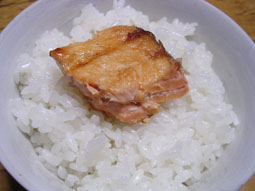 実は「そりゃ2千円もするんならウマいだろうよ!」と思いながら食べ始めたのだが、値段のことを考える自分が悲しくなるほどに、それはウマいシャケだった。さすがの味と言っておこう。 |