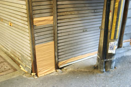 このシャッターは、荒々しくもダイナミックな貼り方です。