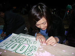 しかし、ここまででかなりのお客さんが来たにもかかわらず、1枚も型抜きは成功していない。ふつうは20人にひとりくらいの割合でお金を持って行かれるとのことなのだが。