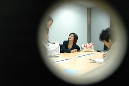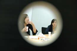 この日は、夜からデイリーポータルZの編集会議が行われる予定だった。もちろん僕も参加する事になっていたので、編集部から商談スペースに 場所を移した。今度は編集会議の様子をのぞき穴から観察する。