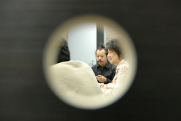 この日もいつも通り、編集会議は長時間に渡った。時間が経過するうち、僕がのぞき穴からのぞいてる事をみんなが気にしなくなっていく。そのおかげで「水飴の和尚さん」的な状況を穴越しに垣間みる事が出来た。 上の写真からも「のぞき見している感」がにじみ出ていると思う。