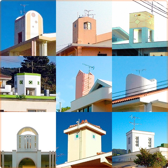 加速する水タンク隠し。家本体とのコーディネートを重視した作品たち。沖縄建築における水タンク使いの歴史を感じる